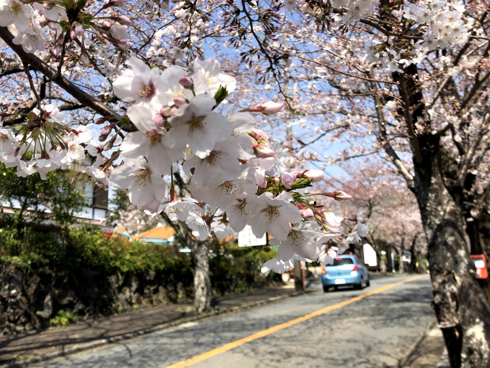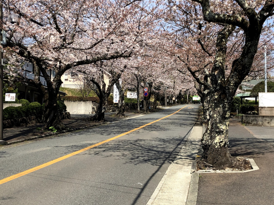 Around 600 cherry blossom trees line the road starting from Izu-Kogen Station and heading towards Mt. Omuro. They bloom in spring creating a 1.8 mile long tunnel of cherry blossoms. Food stalls are usually lining the plaza in front of the station as part of the cherry blossom festival. They also illuminate the cherry blossoms at night.