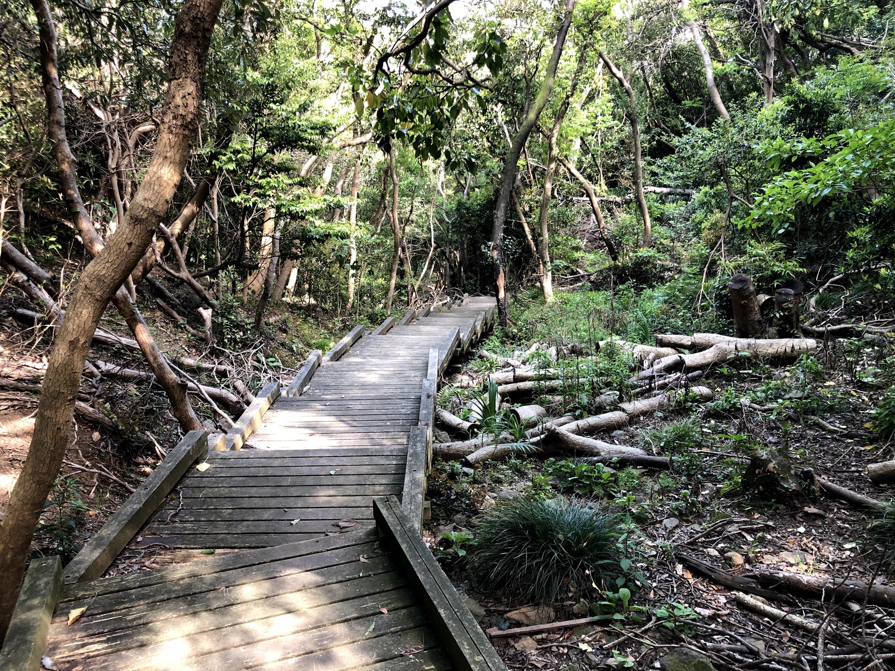 The walk was quite hard for someone not used to climbing a lot of stairs. There are benches littered about the route for you to rest when you need to. You will walk past the Cape Tarai cave and round the winding, constantly ascending and descending route towards the cape if you’re heading from the Toji side. At the fork I recommend going the easy route first as you climb the stairs and take the nature route back to the fork.