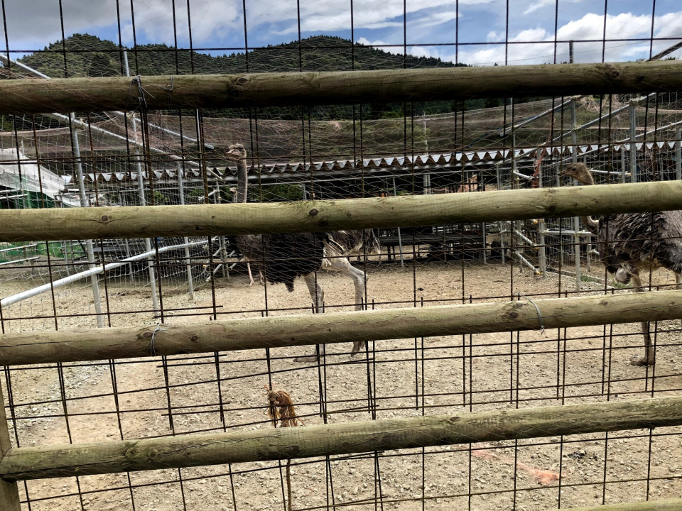 I couldn’t find the place on Google Maps so head towards the Nishiizu Kogen Rest House and walk slightly down the road. At the curve you should see the top of the play park to tell you where to go. There are two paths which take you down here. Head to the bottom to reach the ostrich farm.